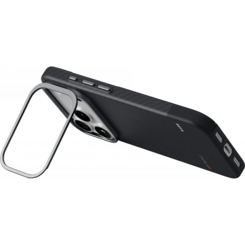 Husa este echipată cu un suport discret integrat în zona camerei, care se transformă rapid într-un stand practic pentru vizionarea filmelor, apeluri video sau navigare. O funcție utilă care nu afectează designul elegant al telefonului.
