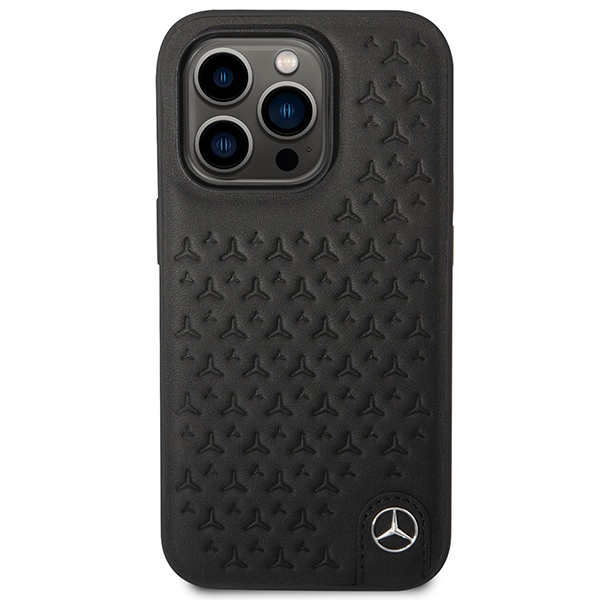 Carcasa Mercedes Leather Stars Pattern compatibila cu iPhone 14 Pro, Negru
