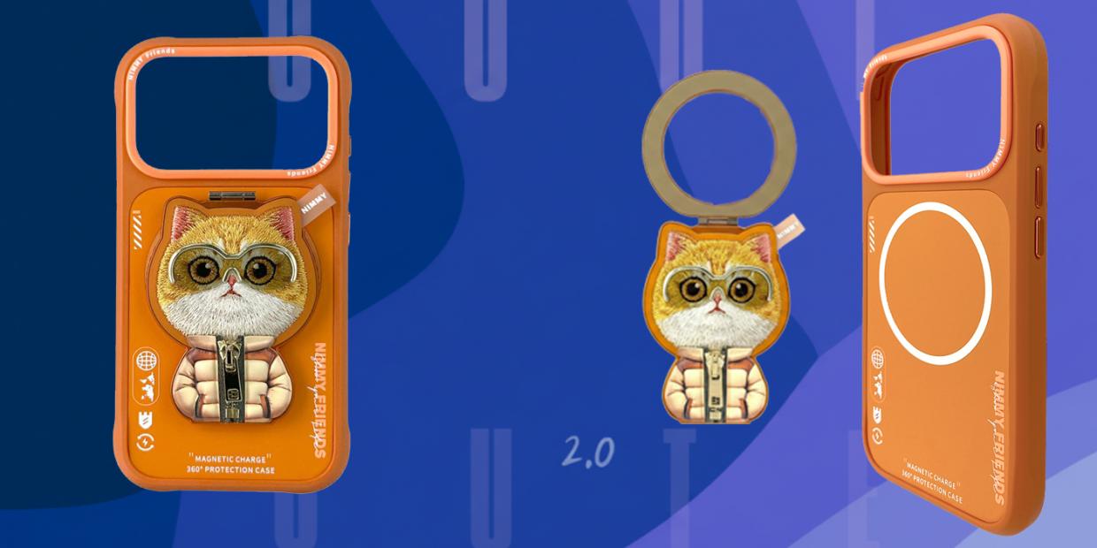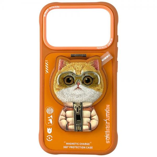 Carcasa Nimmy Cool and Cute 2.0 Cat cu Magnetic Pendant compatibila cu iPhone 17 Pro Max, Portocaliu Cod produs: NIM-173482
