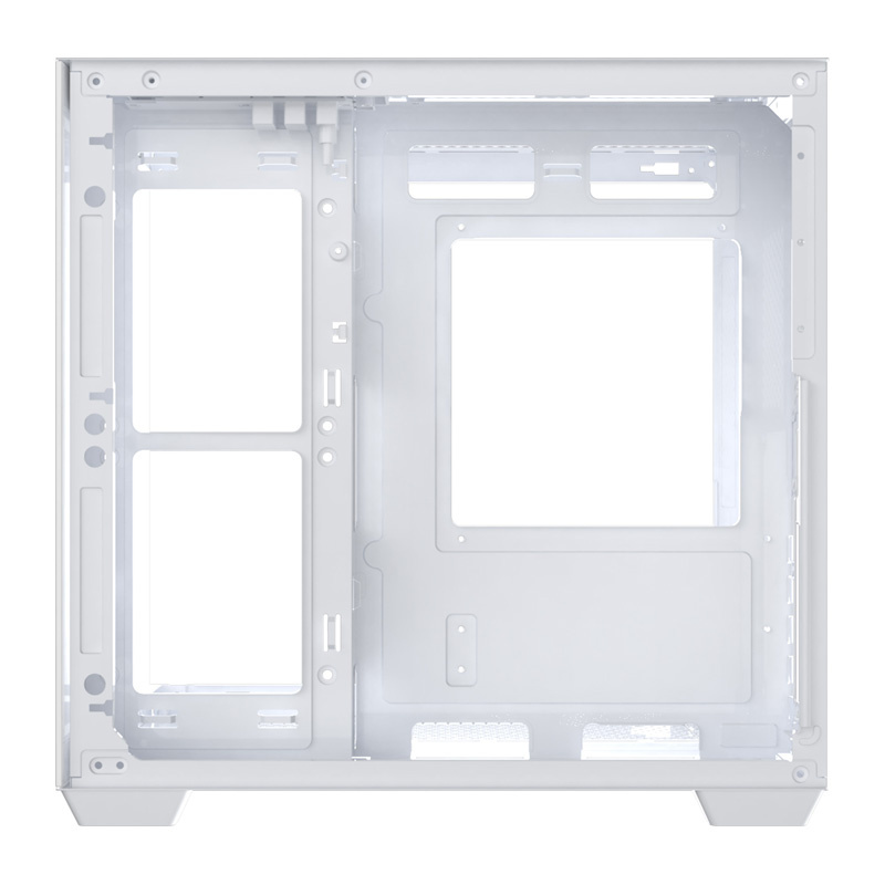 Carcasa este echipată cu panouri din sticlă care oferă o vedere panoramică de 270° asupra interiorului. Designul fără stâlpi laterali face ca toate componentele să fie clar vizibile din față și din lateral. Această soluție funcționează deosebit de bine cu kiturile de iluminare RGB, accentuând estetica întregii configurații. Puneți-vă ideile în practică și construiți un computer care să iasă în evidență!