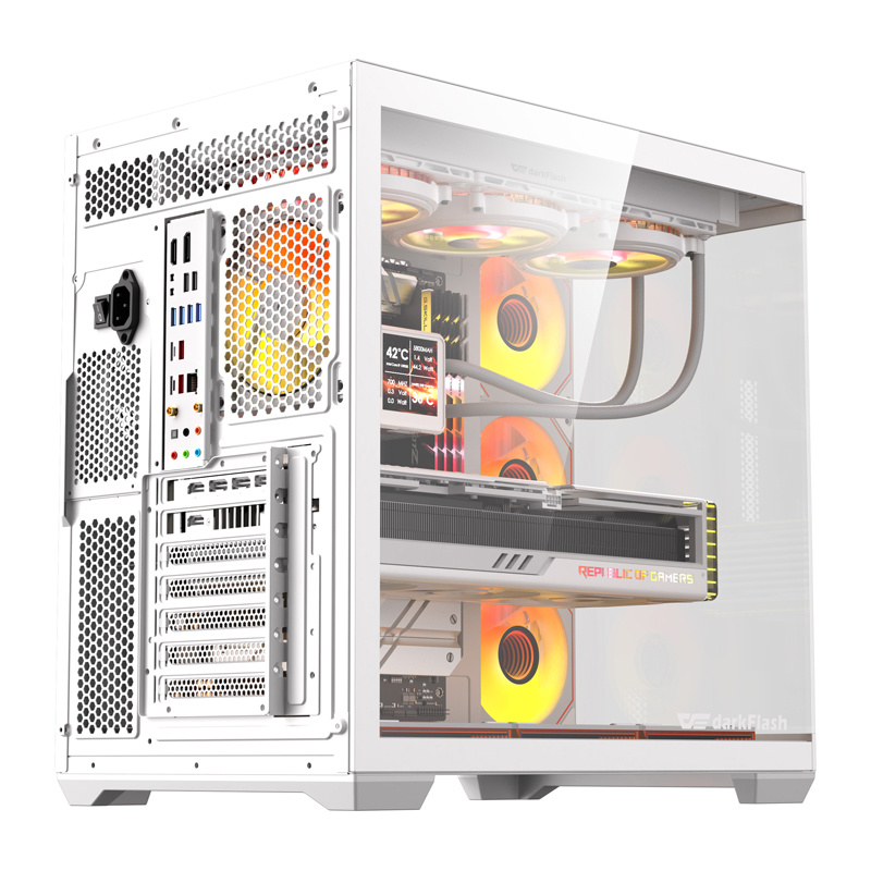 Carcasa pentru computer darkFlash C280, Middle Tower, E-ATX, ATX, ITX, Micro ATX, 7 ventilatoare incluse, Alb