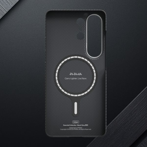 PITAKA a asigurat că fiecare detaliu al carcasei Ultra-Slim este perfect finisat. Decupajele precise garantează acces facil la butoane și porturi, în timp ce marginile ridicate din jurul camerei protejează lentilele de contactul cu suprafețele. Fibră de aramidă durabilă formează o țesătură caracteristică care conferă carcasei un aspect modern și elegant. Această versiune prezintă motivul unic Apus · Răsărit de Lună, inspirat de tranziția de la apus la răsăritul de lună, conferind carcasei un caracter distinctiv. Întregul design este completat de noua siglă a brandului, integrată subtil în design. Suprafața texturată îmbunătățește prinderea, subliniind în același timp un stil de clasă premium.
