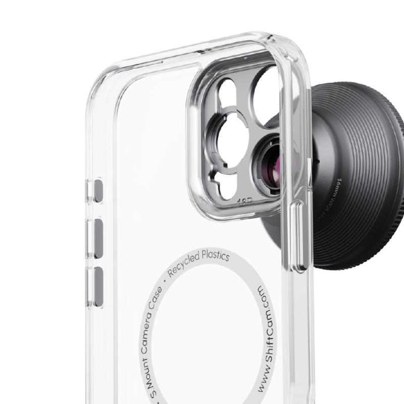 Husa ShiftCam elimină complet efectul de vignetare din imagini datorită formei sale absolut precise. În plus, îți oferă un instrument care ridică fotografia mobilă la nivel profesional – o montură de lentile și două convertoare din aluminiu m12, compatibile cu întreaga serie ShiftCam LensUltra. Noua montură a husei este mai robustă decât modelele anterioare și este integrată solid în husă pentru durabilitate crescută.