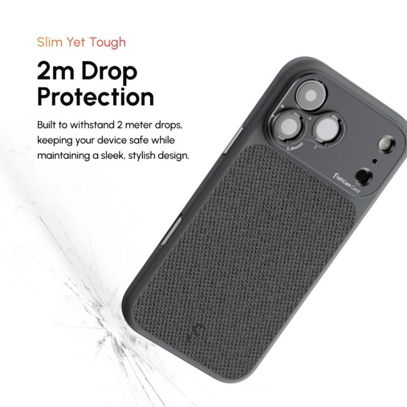 Husa ShiftCam elimină complet efectul de vignetare din imagini datorită formei sale absolut precise. În plus, îți oferă un instrument care ridică fotografia mobilă la nivel profesional – o montură de lentile și două convertoare din aluminiu m12 la S.Mount, compatibile cu întreaga serie ShiftCam LensUltra. Noua montură a husei este mai robustă decât modelele anterioare și este integrată solid în husă pentru durabilitate crescută.