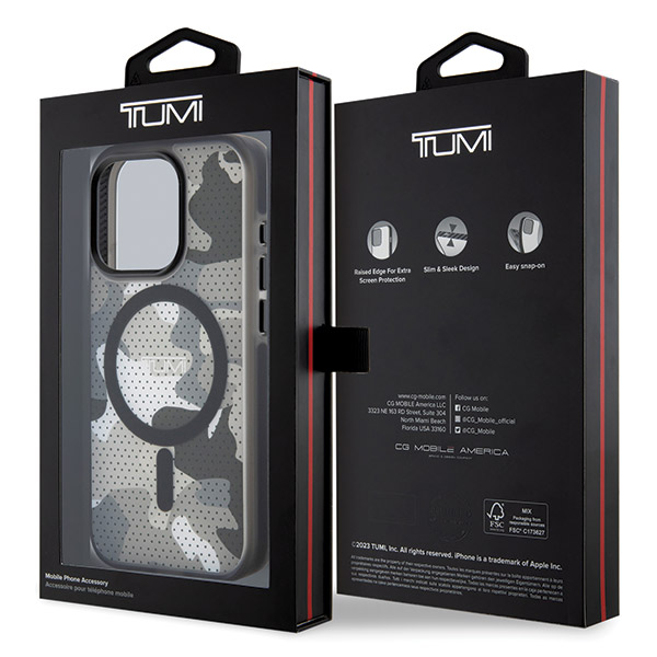 Descoperiți colecția unică Tumi, care nu doar că atrage atenția cu designul său neconvențional, dar garantează și cel mai înalt nivel de protecție pentru smartphone-ul dumneavoastră. Colecția Imprimeu Camuflaj Înghețat MagSafe, aprobată de renumitul producător de genți de călătorie TUMI, este perfectă pentru cei care apreciază accesoriile îndrăznețe.