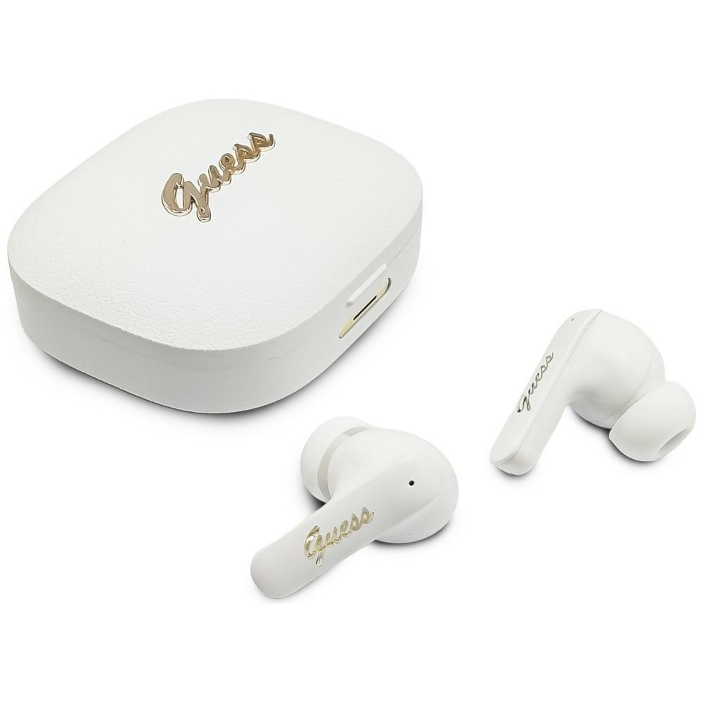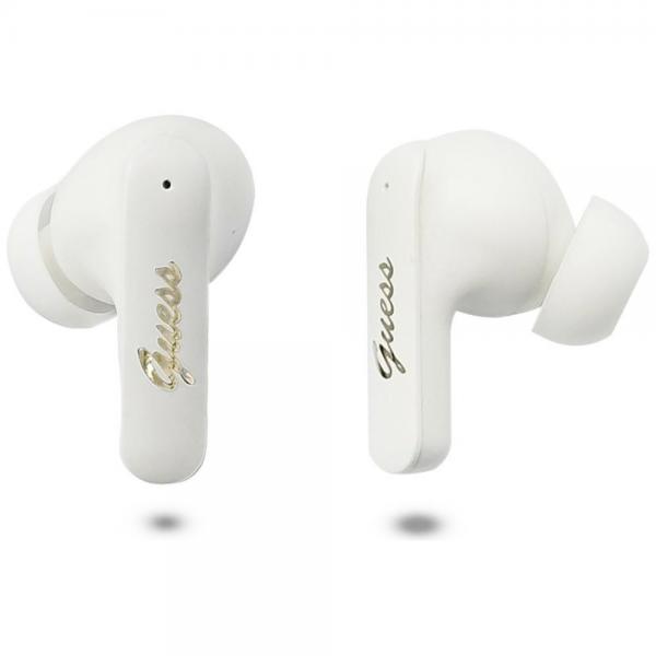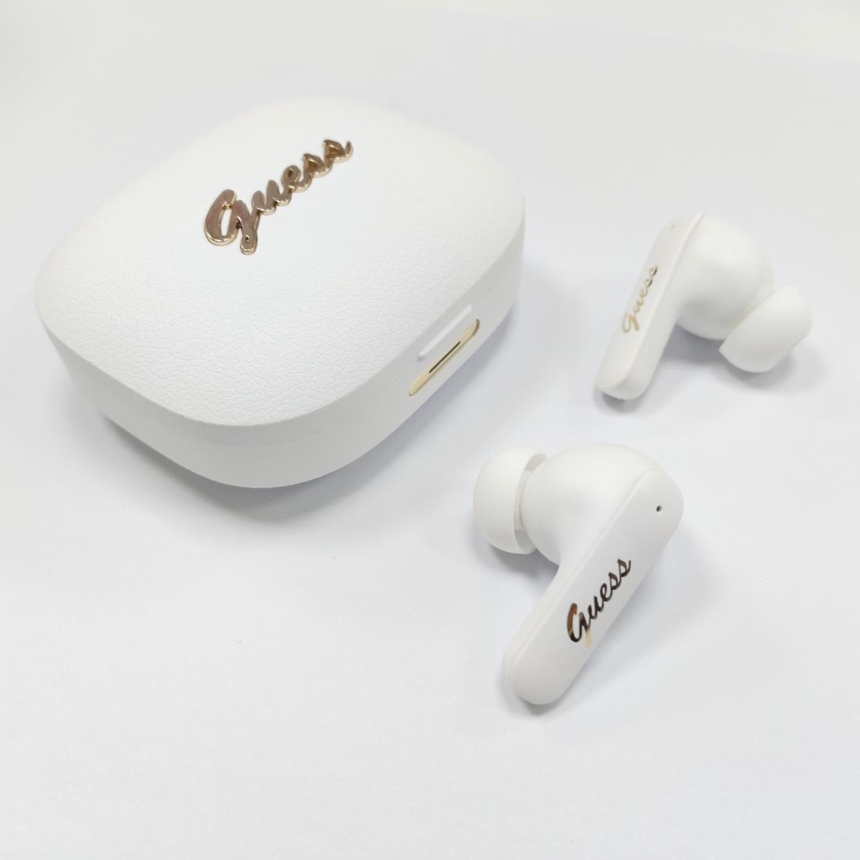 Casti wireless Guess Script Metal Logo TWS, Bluetooth, 400 mAh, Autonomie 6h, USB-C, Alb Cod produs: GUE-183863