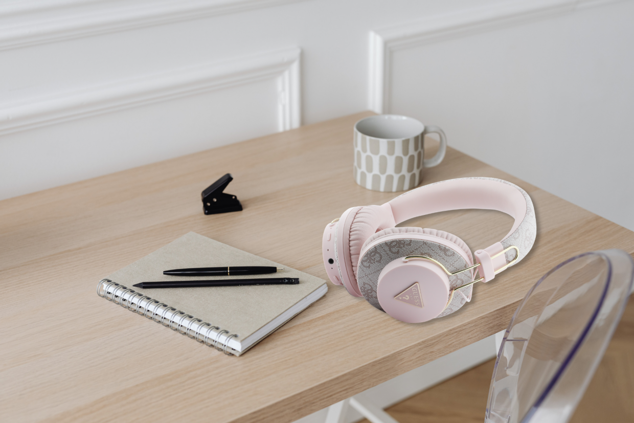 Culoarea roz conferă căștilor un aspect elegant și minimalist, în timp ce emblemele caracteristice ale brandului adaugă un accent exclusiv. Logo-ul metalic GUESS adaugă o notă de lux și confirmă autenticitatea și calitatea premium a produsului.