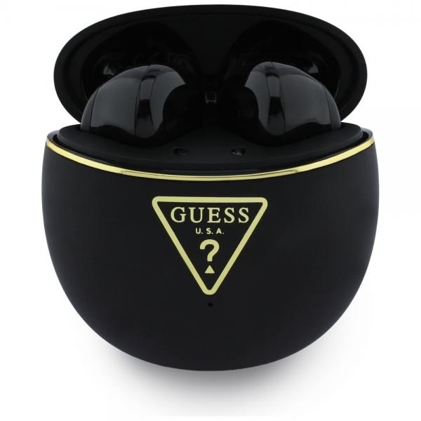 Casti wireless TWS Guess Gold Line Triangle, Bluetooth 6.0, 300 mAh, Autonomie 4h, IPX5, Negru
