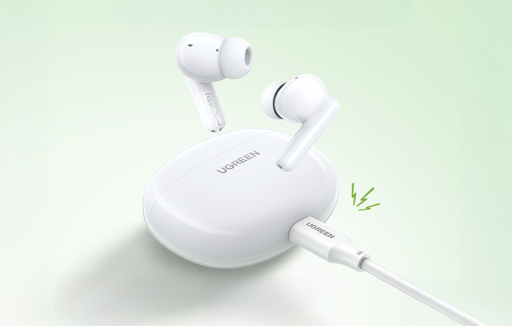 Casti wireless UGREEN TWS HiTune T3C, Bluetooth 5.4, Autonomie 5.5h, IPX5, USB-C, Alb