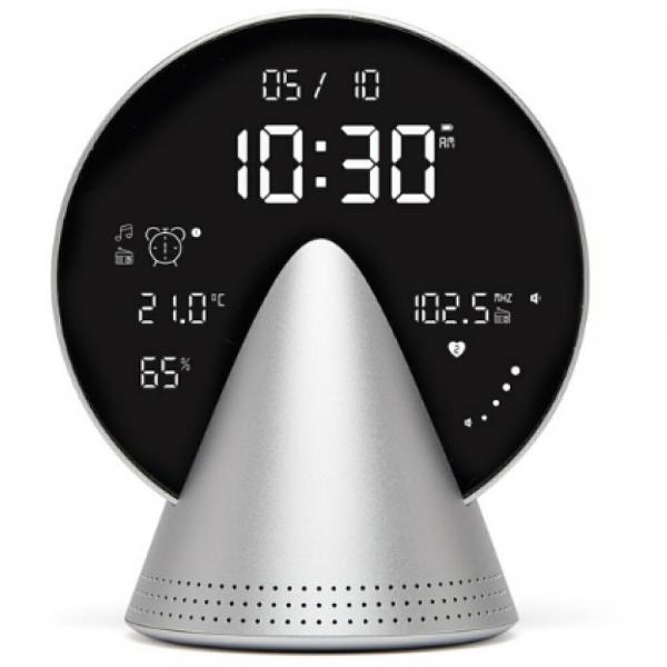 Ceas cu alarma Lexon Conic, Display Digital, Difuzor Bluetooth 5W, 2000mAh, Autonomie 8h, USB-C, Silver Cod produs: LEX-176005