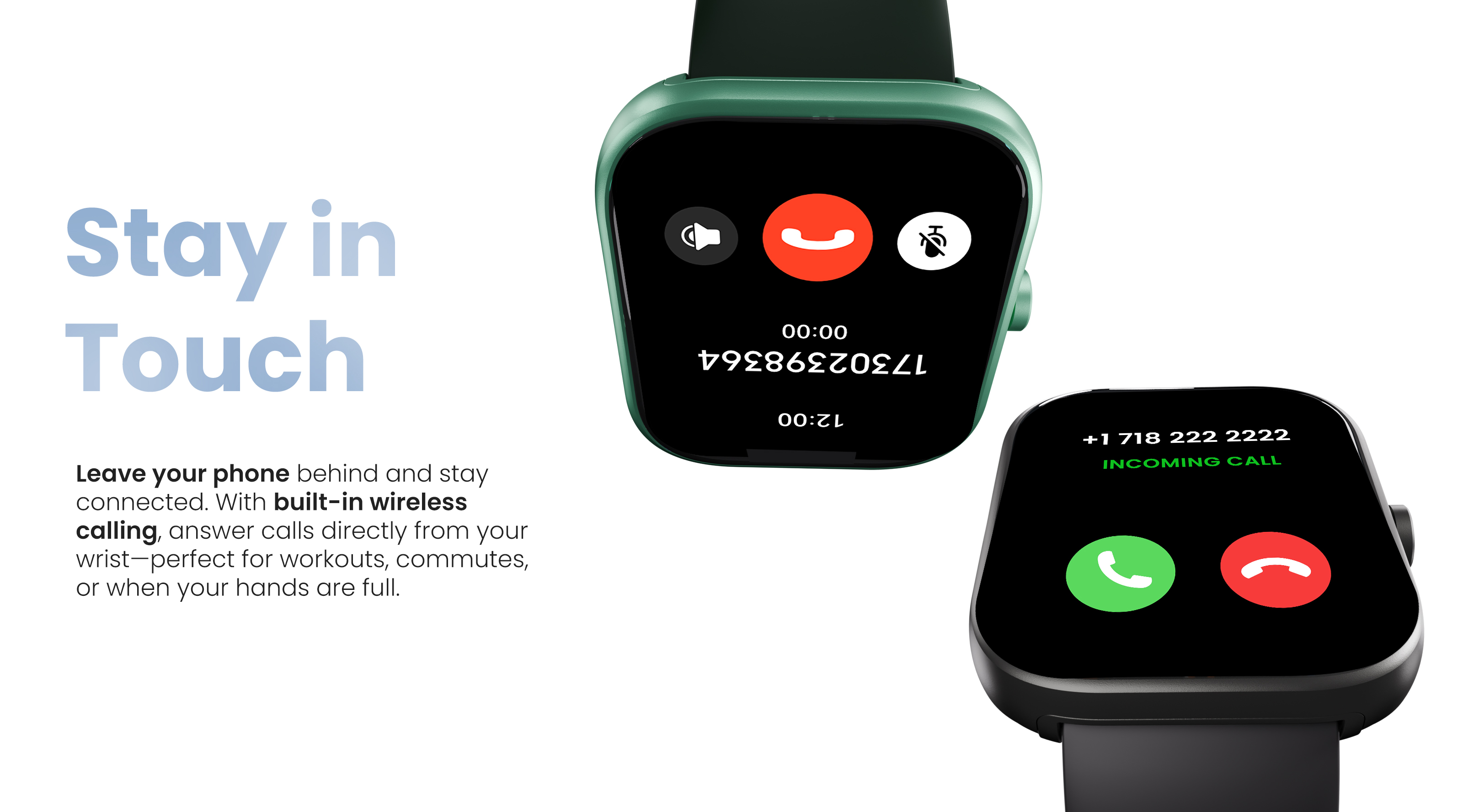 Lasă telefonul deoparte și rămâi în contact. Cu funcția de apelare wireless integrată, poți răspunde la apeluri direct de la încheietura mâinii — perfect pentru antrenamente, deplasări sau momentele în care ai mâinile ocupate.