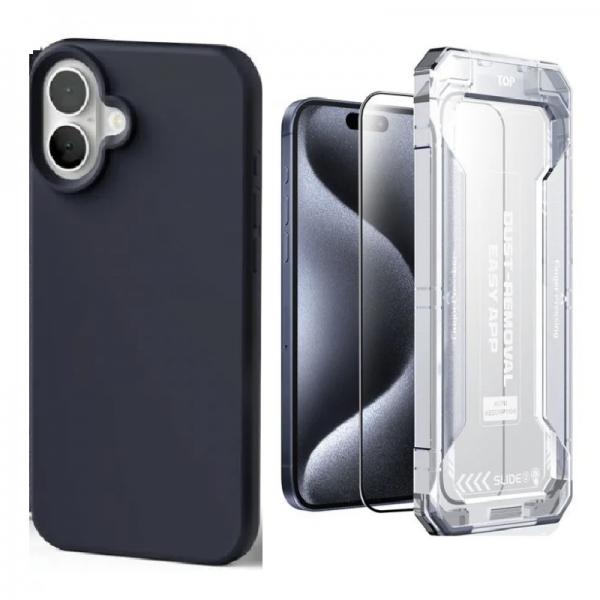 [Combo] iPhone 16 Plus, Carcasa Mercury Silicone + Folie sticla Mobile Origin Yellow Screen Guard