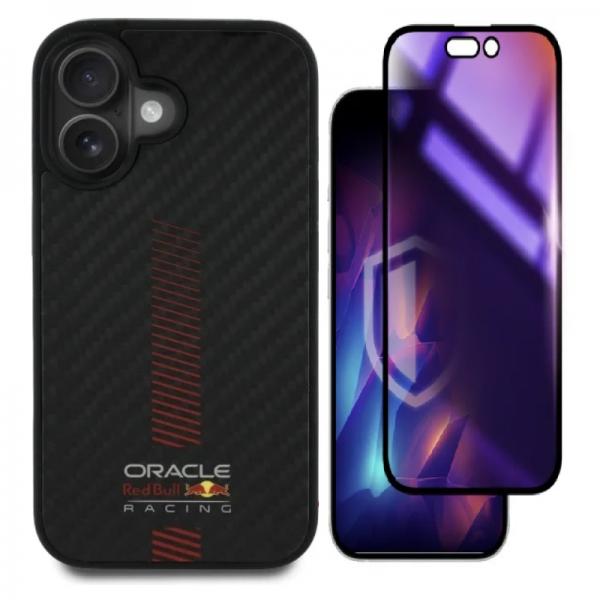 [Combo] iPhone 16 Plus, Carcasa Red Bull Carbon Fiber Power Bar cu MagSafe + Folie protectie sticla securizata 3mk Rainbow Privacy Cod produs: SUP-177484