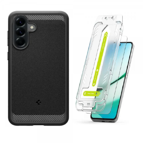 [Combo] Samsung Galaxy A56, Carcasa Spigen Rugged Armor + 2 folii sticla cu sistem de montare Ringke Easy Slide