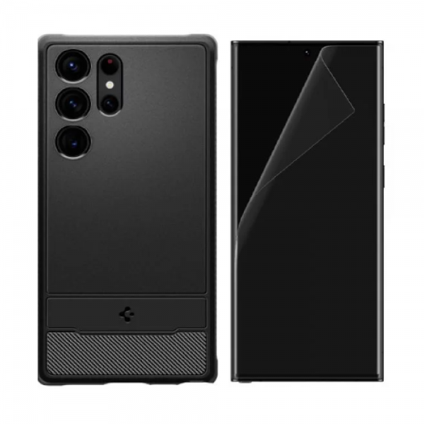 [Combo] Samsung Galaxy S23 Ultra, Carcasa Spigen Rugged Armor + 2 folii protectie TPU Case friendly Spigen Neo Flex