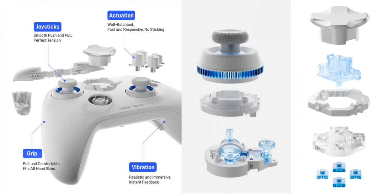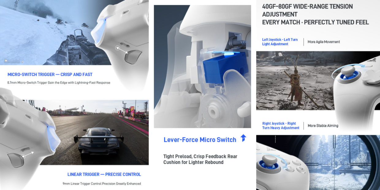 Acest controller se remarcă prin precizie excepțională datorită micro-switch-urilor și joysticks-urilor cu rezistență ajustabilă. Datorită trigger-elor de vibrație moderne, poți simți fiecare aspect al jocului – de la vibrații subtile în jocurile de împușcături la vibrații puternice în jocurile de curse.