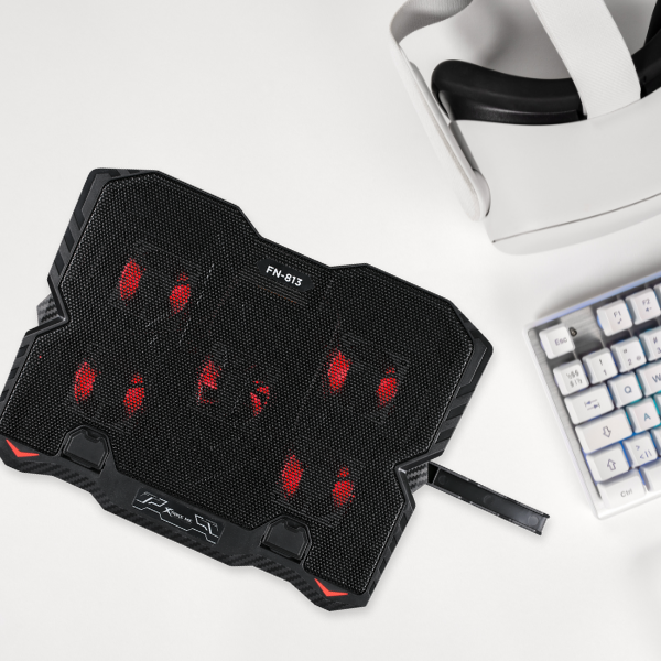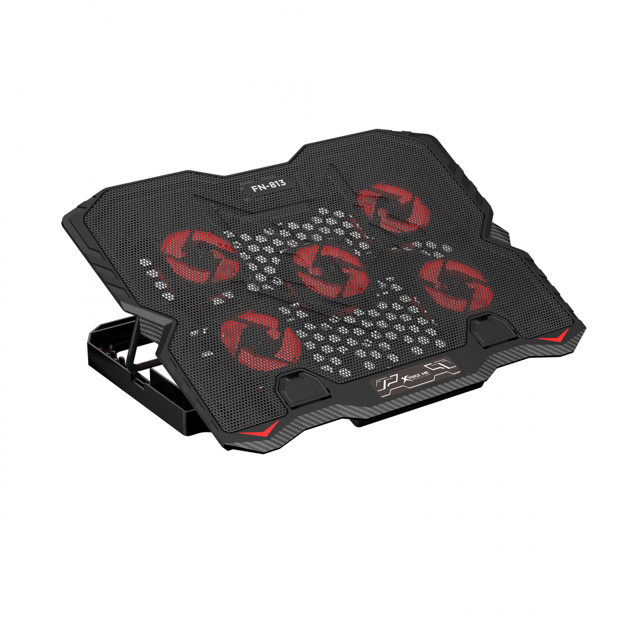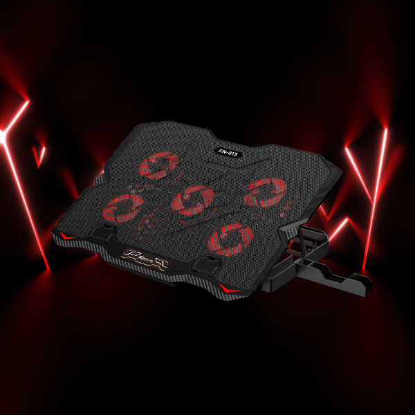 Cooler laptop gaming XTRIKE ME FN-813, Compatibil cu laptop de maxim 16 inch, 5 vemtilatoare, 3200 rpm, 2xUSB, Iluminare LED rosu, Ajustabil, 360 x 270 x 32mm, Negru Cod produs: XTR-165802