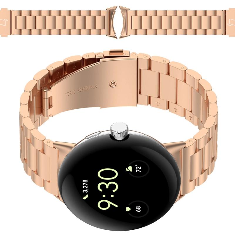 Curea din otel inoxidabil Bizon Aura compatibila cu Google Pixel Watch 4 / 3, 45mm, Rose Gold
