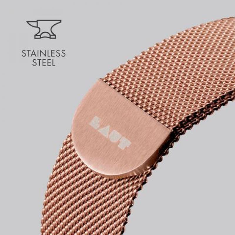 Închiderea magnetică tip Milanese loop este discretă și se integrează perfect în design, fără a afecta aspectul general al curelei. Magnetul puternic permite o fixare sigură și reglarea ușoară a dimensiunii, pentru încheieturi de până la 240 mm.