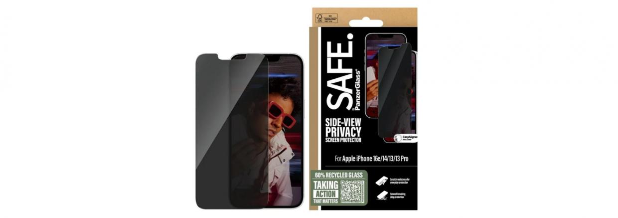 SAFE. de la PanzerGlass® oferă protecție eficientă pentru confidențialitatea și securitatea telefonului dumneavoastră. Fabricată din 60% sticlă reciclată, filtrul de confidențialitate împiedică persoanele din jur să vizualizeze conținutul afișat pe ecran. Protejează datele private în locuri publice, asigurând discreția în utilizarea zilnică.