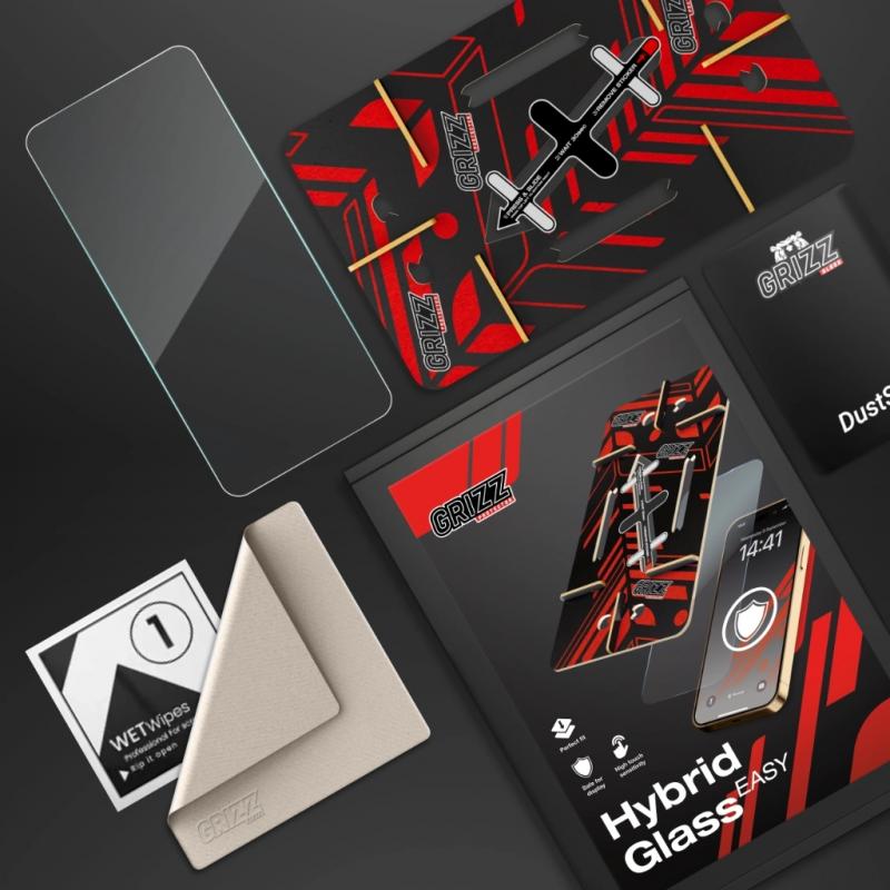 Cu ajutorul tehnologiei laser, Grizz HybridGlass Easy este tăiat precis pentru ecranul dispozitivului tău. Se potrivește perfect pe suprafața plană a ecranului și este aproape invizibil. Fără bule de aer pe margini.