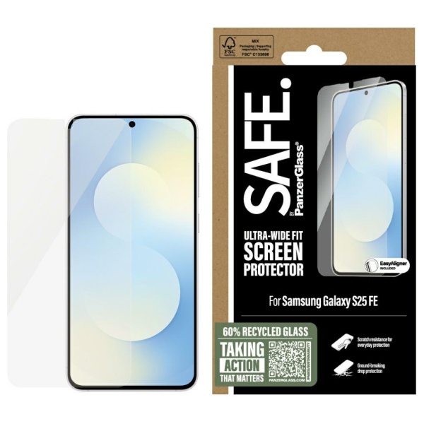 Folie sticla securizata SAFE de PanzerGlass Ultra-Wide Fit compatibila cu Samsung Galaxy S25 FE, Transparent
