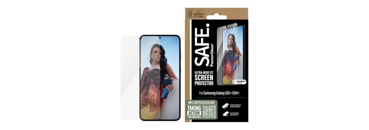 SAFE. este cu adevărat pentru tine. SAFE. este pentru acele momente când aluneci pe ringul de dans, te lupți cu selfie-urile sau experimentezi stângăcii zilnice, căderi și crăpături ale ecranului. Această peliculă protectoare SAFE. de la PanzerGlass®, realizată din 60% materiale reciclate, acționează ca un airbag discret, protejând telefonul tău prin absorbția șocurilor și oferind o rezistență ridicată la zgârieturi fără a compromite funcționalitatea sau aspectul dispozitivului tău. Are chiar un strat anti-împrintă care reduce amprentele și petele de grăsime și asigură 100% compatibilitate cu cititorul de amprente ultrasonic al ecranului tău.