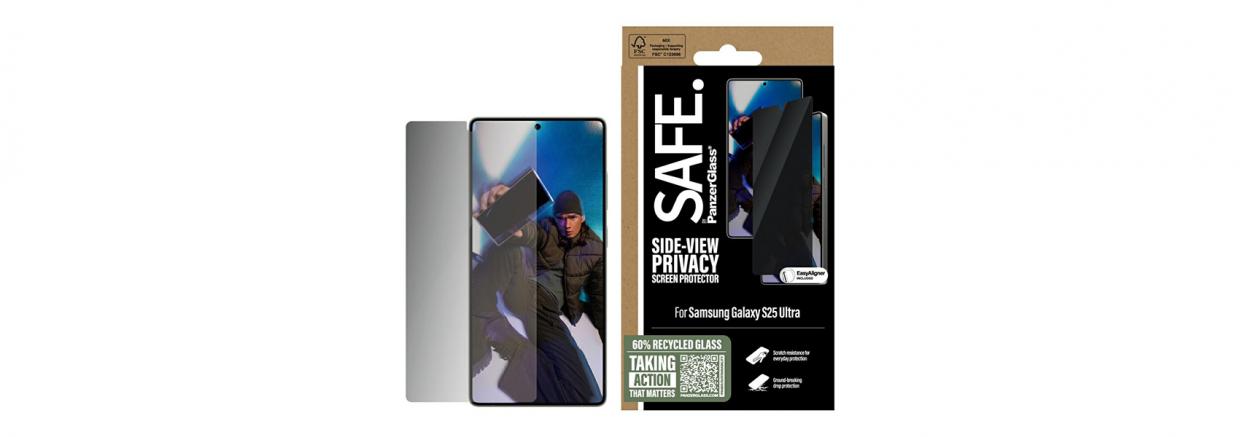 Toată lumea merită SIGURANȚĂ! Tu, telefonul tău și obiectele tale personale! Datorită acestui SAFE. by PanzerGlass®, fabricat din 60% sticlă reciclată, secretele tale de pe ecran sunt în siguranță de privirile curioase în tren, la bar sau în clasă. Filtrul de confidențialitate asigură că conținutul ecranului tău este practic invizibil pentru toată lumea, cu excepția persoanei direct în fața ecranului: TU! Sticla are chiar un strat anti-îngroșare care reduce amprentele și petele de grăsime și asigură 100% compatibilitate cu cititorul de amprente ultrasonice al ecranului tău. Și protecția ecranului? Să spunem așa: nu mai trebuie să-ți faci griji cu privire la accidente pe ringul de dans, selfie-uri eșuate sau mișcări neîndemânatice de zi cu zi, căderi și crăpături ale ecranului!