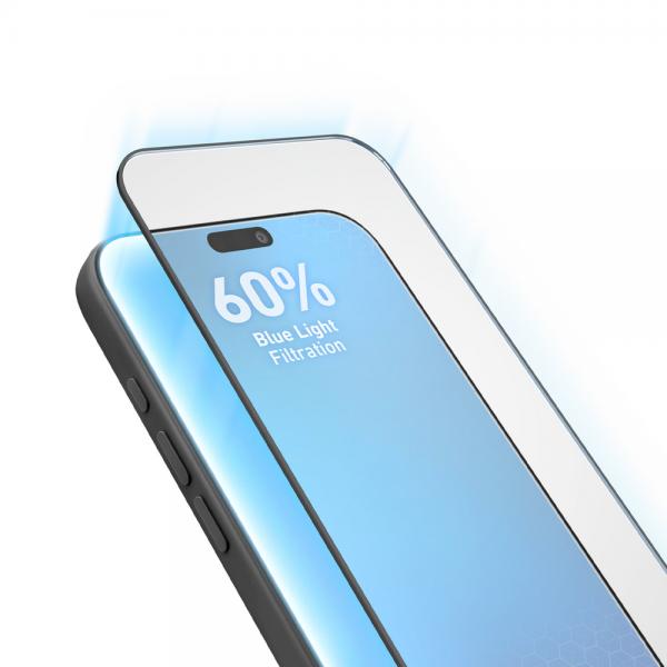 Sticla securizată SBS Eyesafe pentru iPhone 17 Pro Max oferă protecție avansată pentru ecran, susținând în același timp confortul ochilor în utilizarea zilnică. Dezvoltată cu sprijinul medicilor și confirmată prin cercetări, tehnologia Eyesafe CPF60 filtrează 60% din lumina albastră emisă de ecran. Astfel, poți utiliza smartphone-ul mai mult timp, reducând oboseala ochilor și susținând ritmul natural al somnului.
