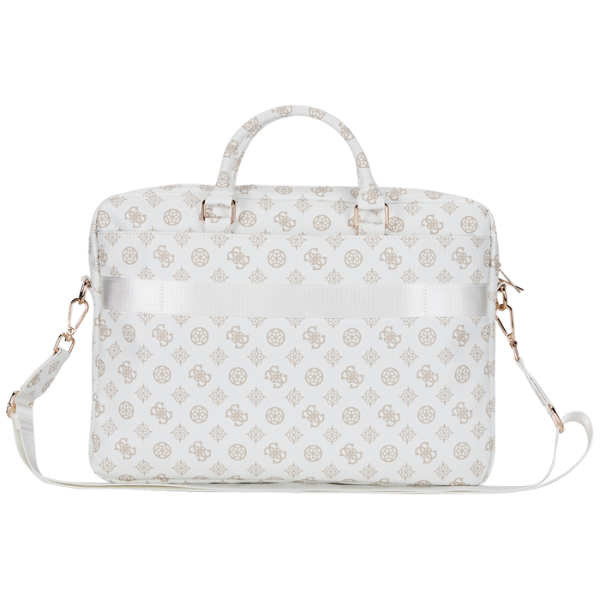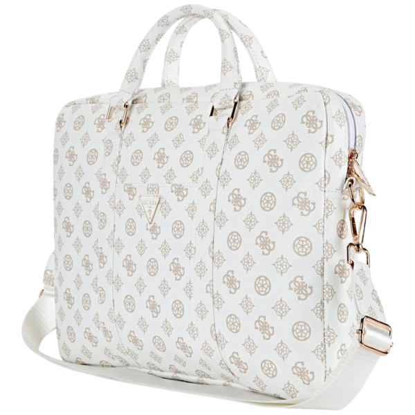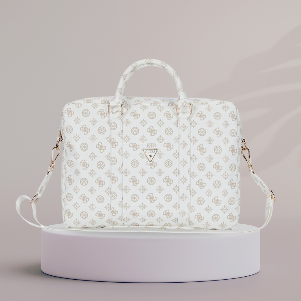 Geanta Guess 4G Peony Triangle Logo compatibila cu laptop 16 inch, Alb