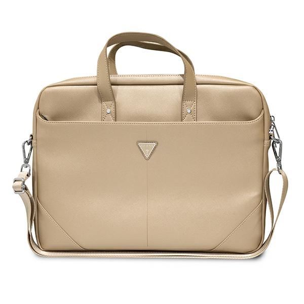 Geanta Guess Saffiano Triangle Logo compatibila cu laptop 16 inch, Bej
