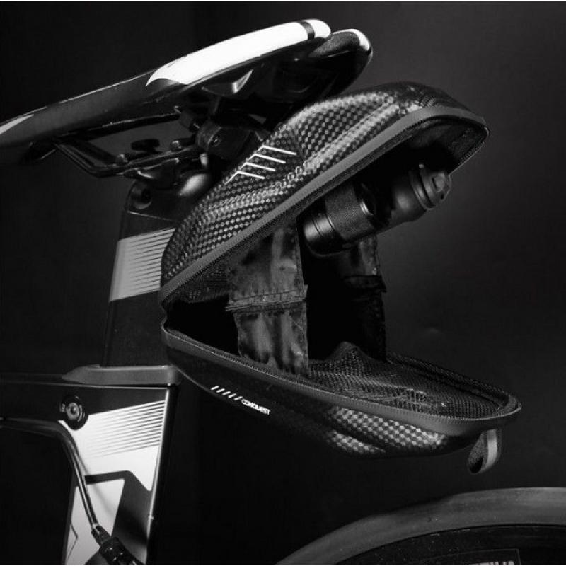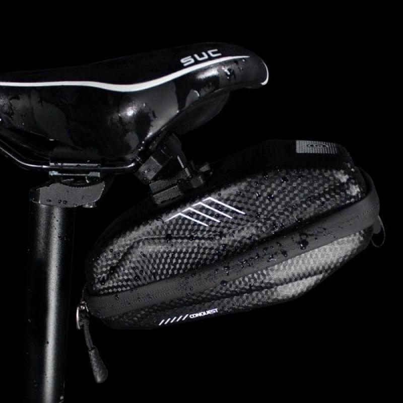 Ventuza este montată sub șa, fiind perfectă pentru a stoca cele mai necesare lucruri, cum ar fi cheile, telefonul sau un kit de reparare util. Clipul de prindere facilitează montarea și demontarea genții. Geanta este fabricată din material PC dur și impermeabil, datorită căruia nu îi este frică de noroi sau apă, chiar și o cădere nu reprezintă o provocare aici, protejând conținutul tău valoros.