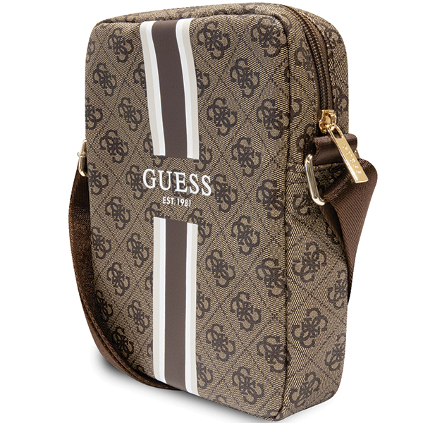 Geanta universala Guess 4G Stripes, compatibila cu dispozitive de maxim 8 inch, Maro
