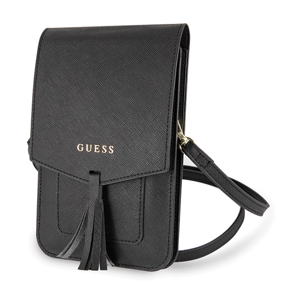 Geanta universala Guess Saffiano Look, 16 x 10 cm, 2 compartimente, Negru