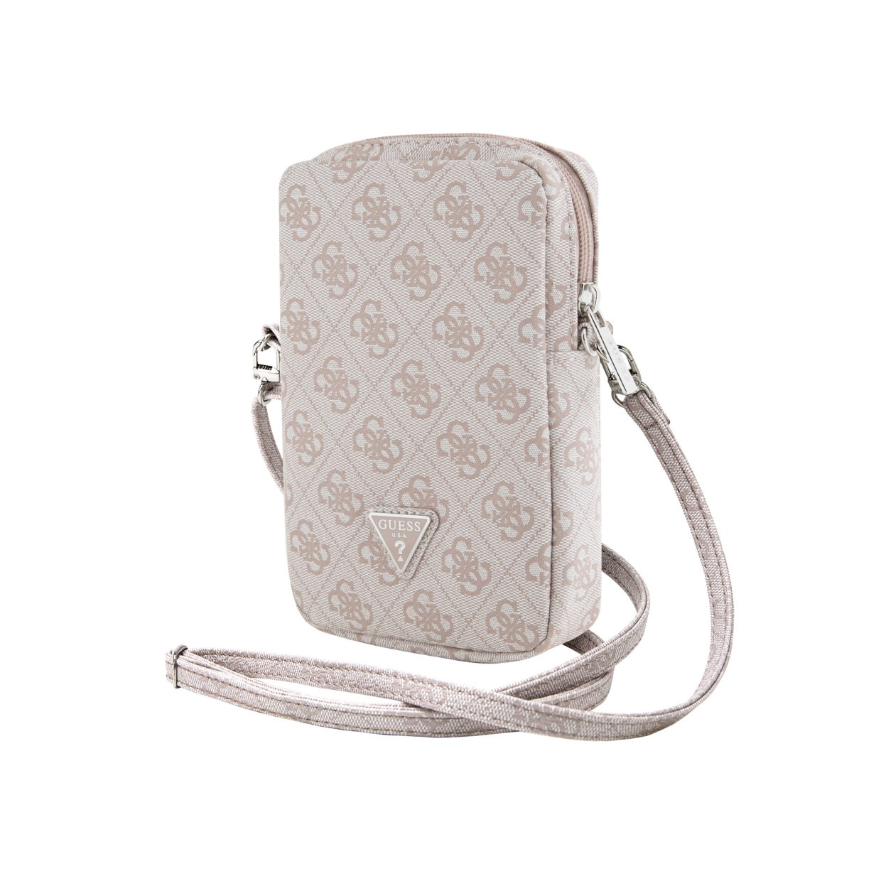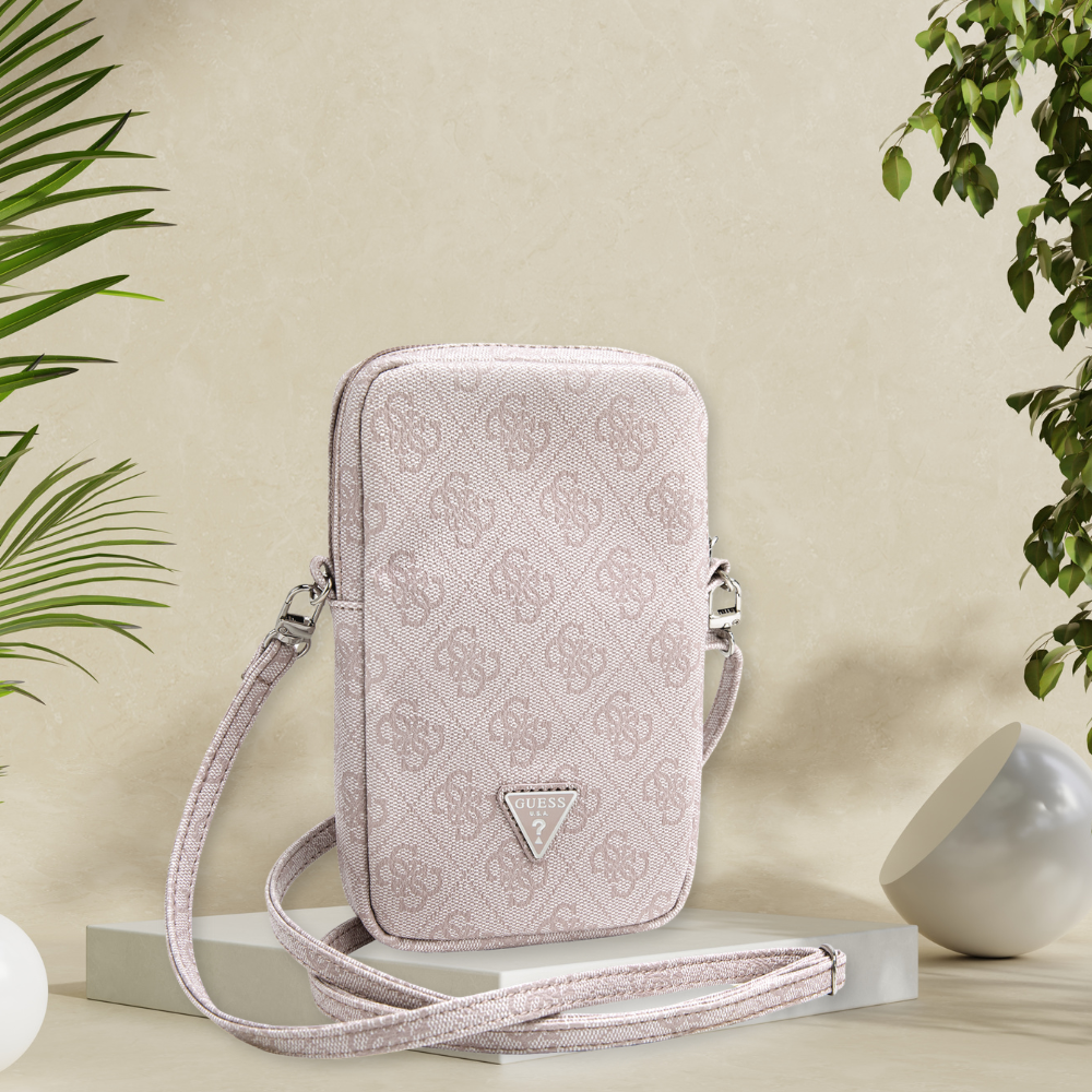Geanta universala Guess Zip 4G Triangle, 19 x 12 x 3.8 cm, 1 compartiment, Roz
