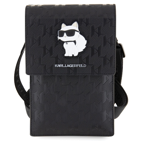 Geanta universala Karl Lagerfeld Saffiano Monogram Choupette, 18.5 x 12 x 2 cm, 2 compartimente, Negru Cod produs: KAR-171781