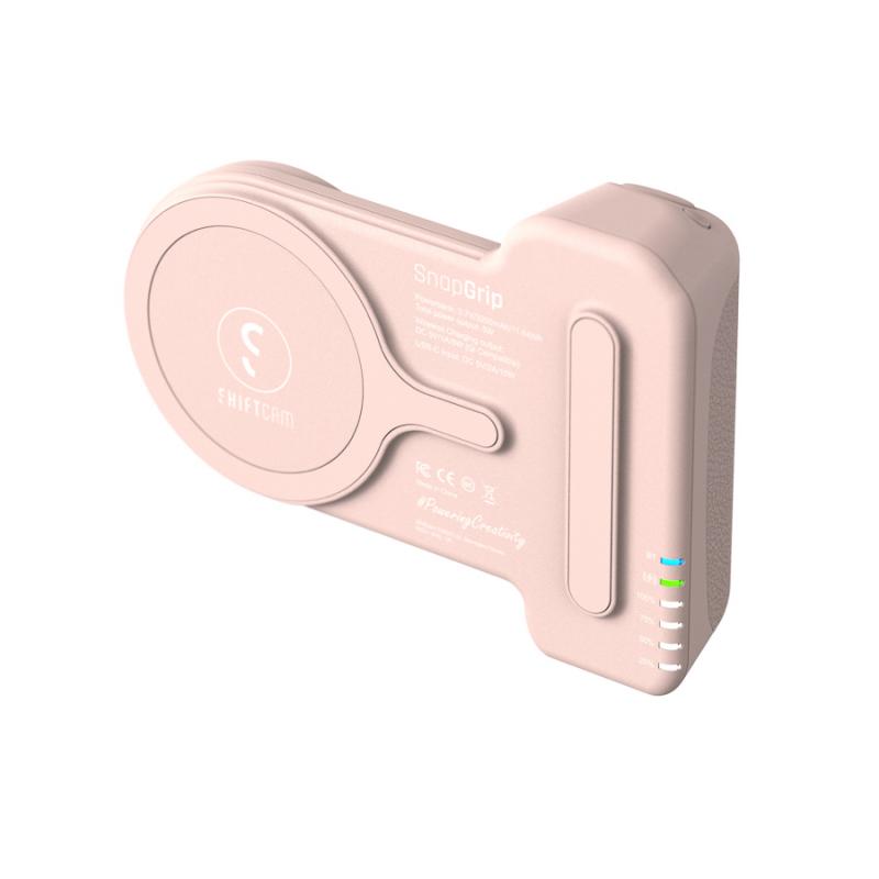 Grip ShiftCam SnapGrip cu MagSafe, 3200mAh, Incarcare Wireless 5W, USB-C, Roz