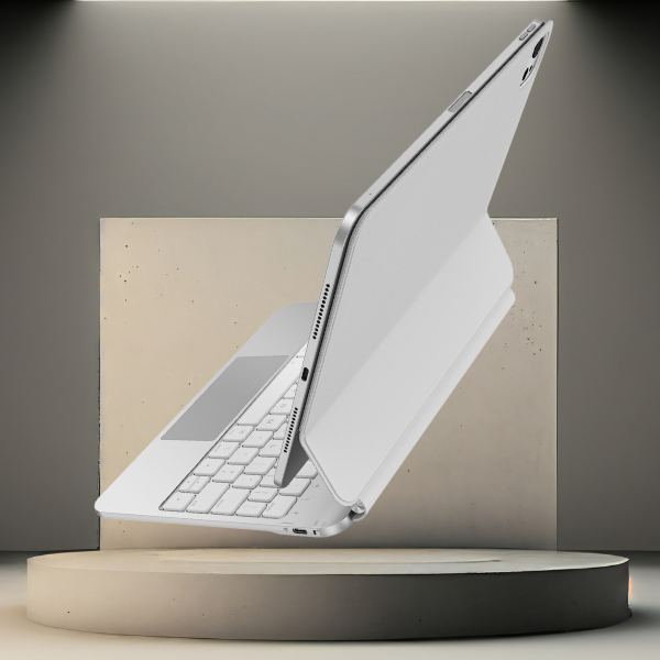 Tastatura completă edge-to-edge este companionul perfect pentru munca ta. Cu o tastare receptivă și un trackpad precis, poți lucra eficient pe iPad-ul tău, fie că creezi, comunici sau navighezi pe internet.