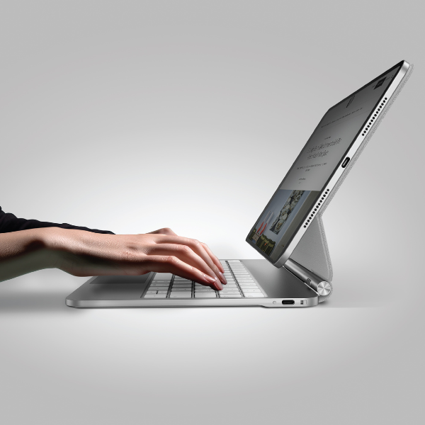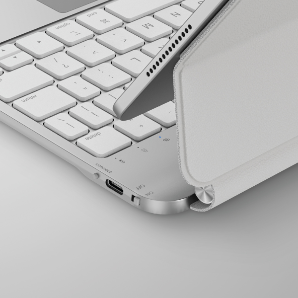 Tastatura de plinătate este companionul perfect pentru munca ta. Cu taste receptive și un touchpad precis, poți lucra eficient pe iPad-ul tău, fie că creezi, comunici sau navighezi pe internet.