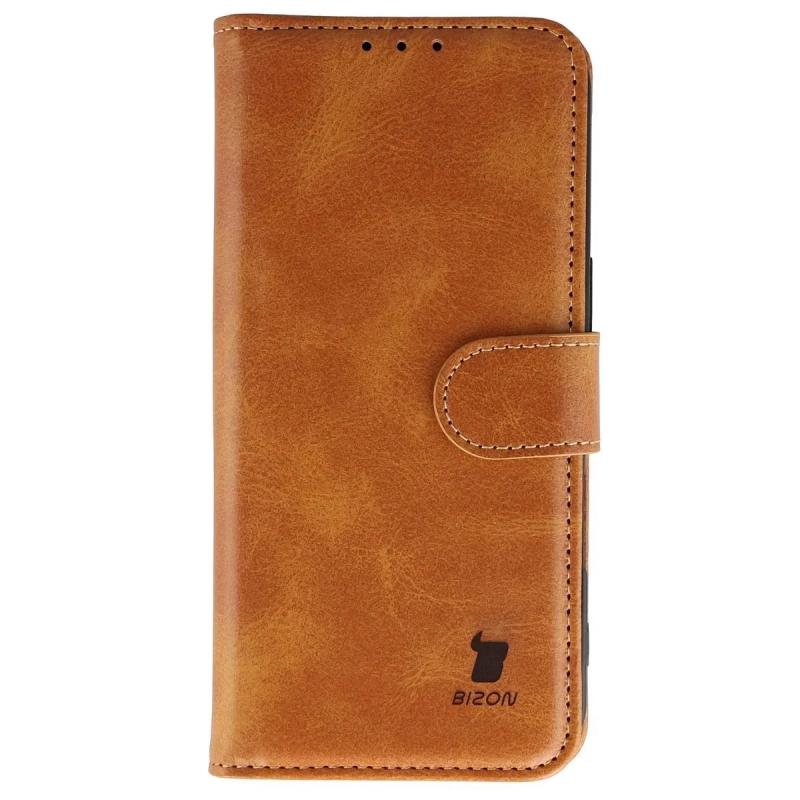 Husa flip cover Bizon Pocket compatibila cu iPhone 17, Maro