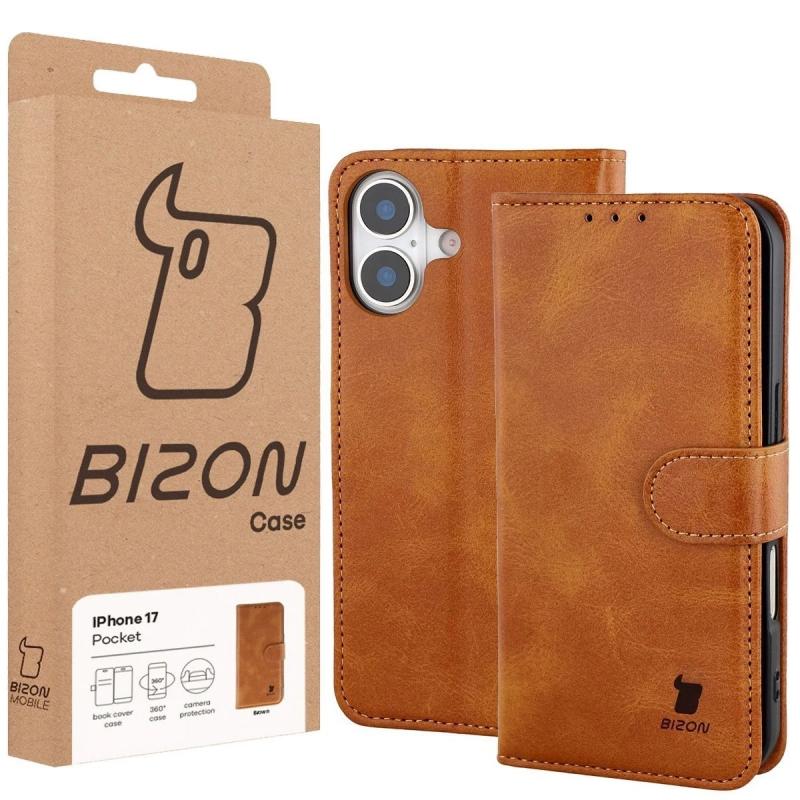 Husa flip cover Bizon Pocket compatibila cu iPhone 17, Maro Cod produs: BIZ-181526