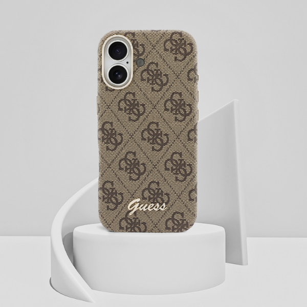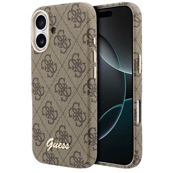 Husa Guess 4G Script cu MagSafe compatibila cu iPhone 17, Maro Cod produs: GUE-177024