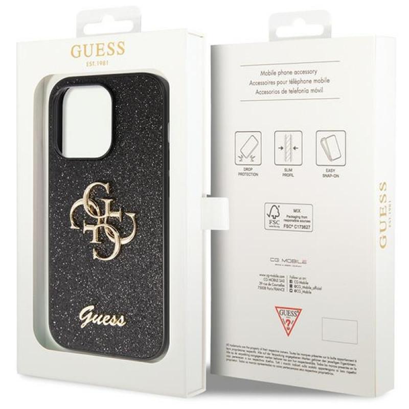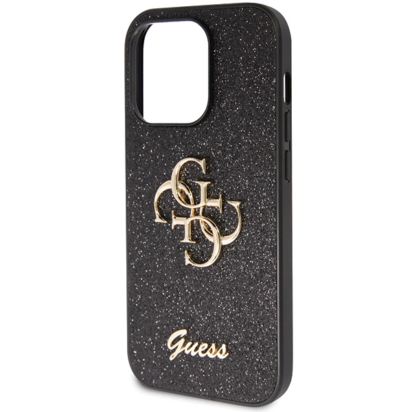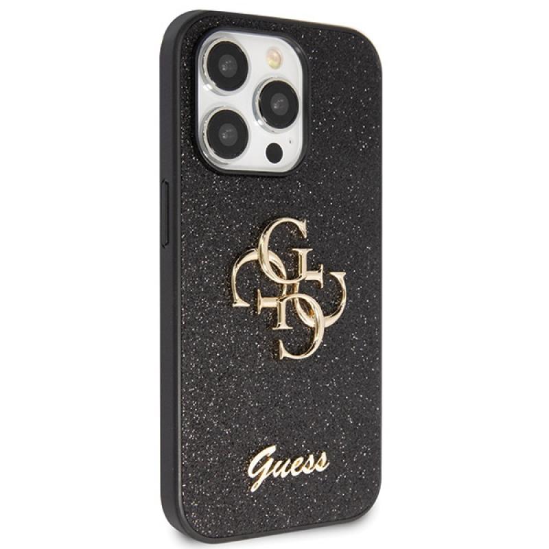 Husa Guess Glitter Script Big 4G compatibila cu iPhone 14 Pro, Negru Cod produs: GUE-178383