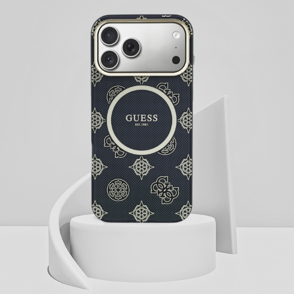 Această husă de protecție exclusivă de la renumita Guess brand este o combinație de eleganță și stil la cel mai înalt nivel. Husa este fabricată din policarbonat de înaltă calitate și poliuretan. Suprafața sa este decorată cu un model distinctiv 4G și un inel MagSafe.