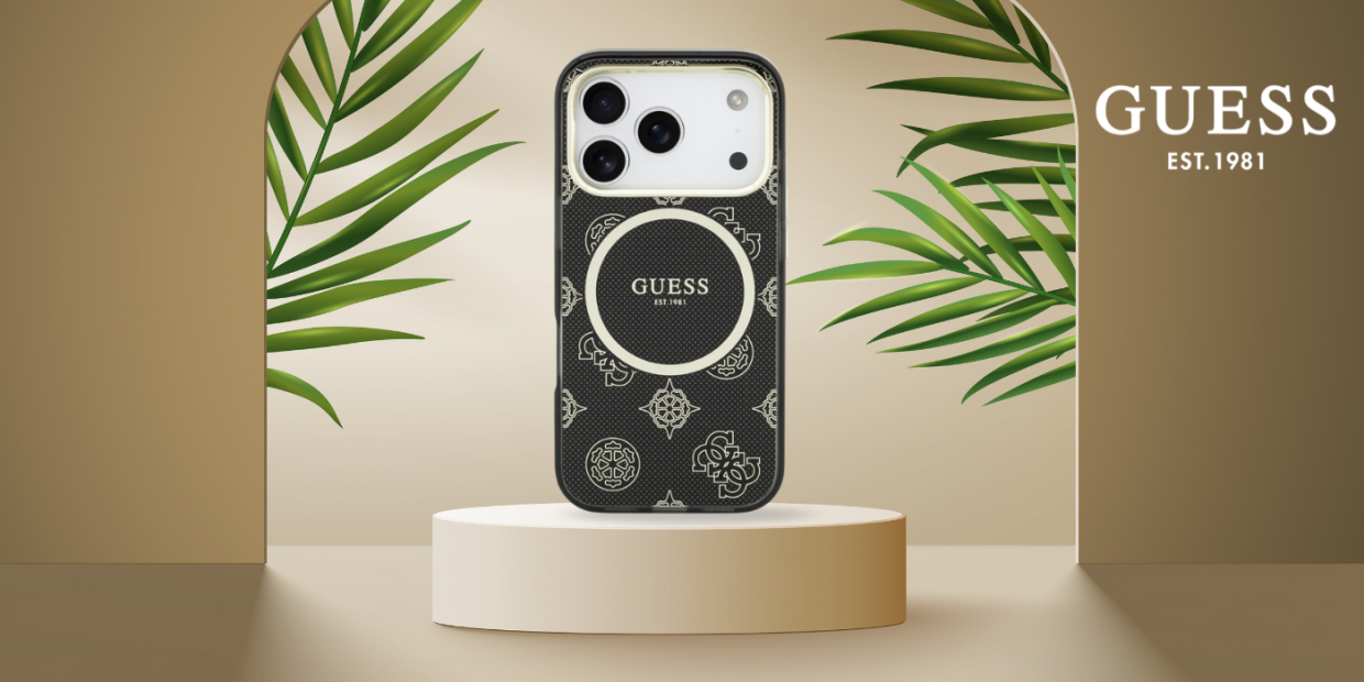 În mijlocul husei se află logo-ul Guess, care subliniază subtil prestigiul acestei huse.