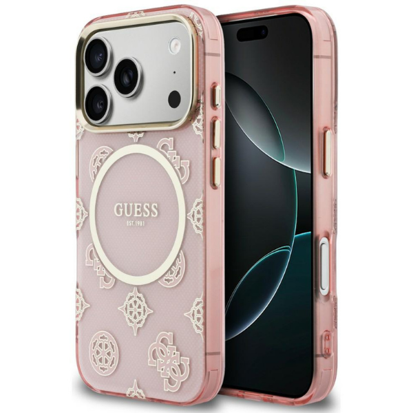 Husa Guess IML Peony Dot cu MagSafe compatibila cu iPhone 17 Pro, Roz