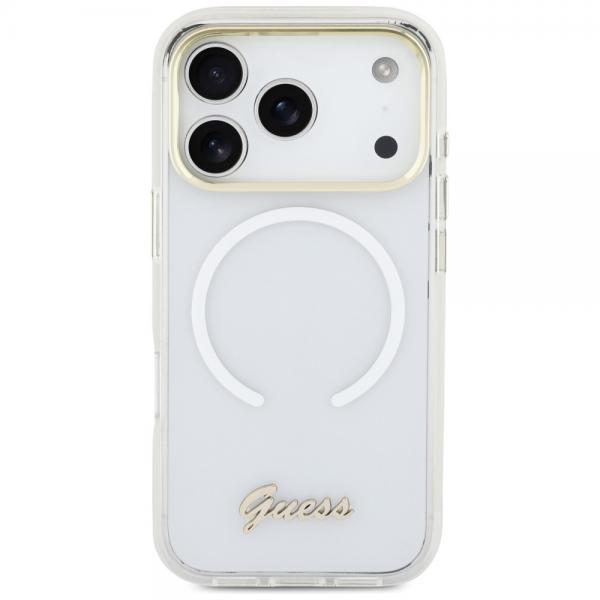 Husa Guess IML Script Metal cu MagSafe compatibila cu iPhone 17 Pro, Alb Cod produs: GUE-177864
