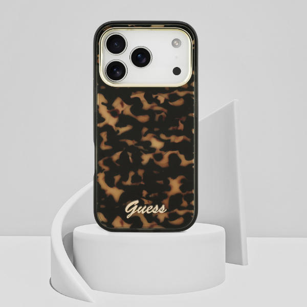 Această carcasă de protecție exclusivă de la renumita Guess brand este o combinație de eleganță și stil la cel mai înalt nivel. Carcasa este fabricată din policarbonat și poliuretan de înaltă calitate. Suprafața este decorată cu un model de țestoasă, adăugând un caracter unic. Un Guess metalic este situat în partea de jos a carcasei, subliniind subtil prestigiul acesteia.