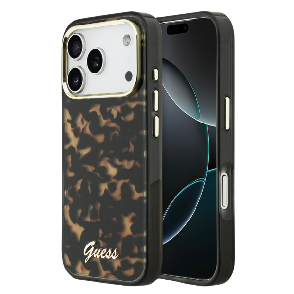Husa Guess IML Script Metal cu MagSafe compatibila cu iPhone 17 Pro Max, Negru / Maro Cod produs: GUE-177842