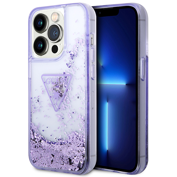 Husa Guess Liquid Glitter Palm Collection compatibila cu iPhone 14 Pro, Violet Cod produs: GUE-178395